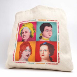 Have you ever wondered what the Founding Mothers–Martha Washington, Abigail Adams, Dolly Madison, and Deborah Reed Franklin–would look like in the style of Andy Warhol’s famous 1967 screen prints of Marilyn Monroe? We know, us too. These women were rockstars, and with the Founding Mothers Tote Bag, we’re finally giving them the rockstar treatment they long ago earned as revolutionaries who rose above every gendered barrier of their time to lead, activate, and inspire.
